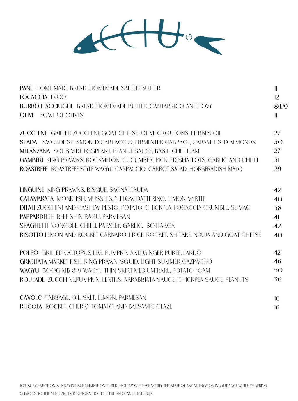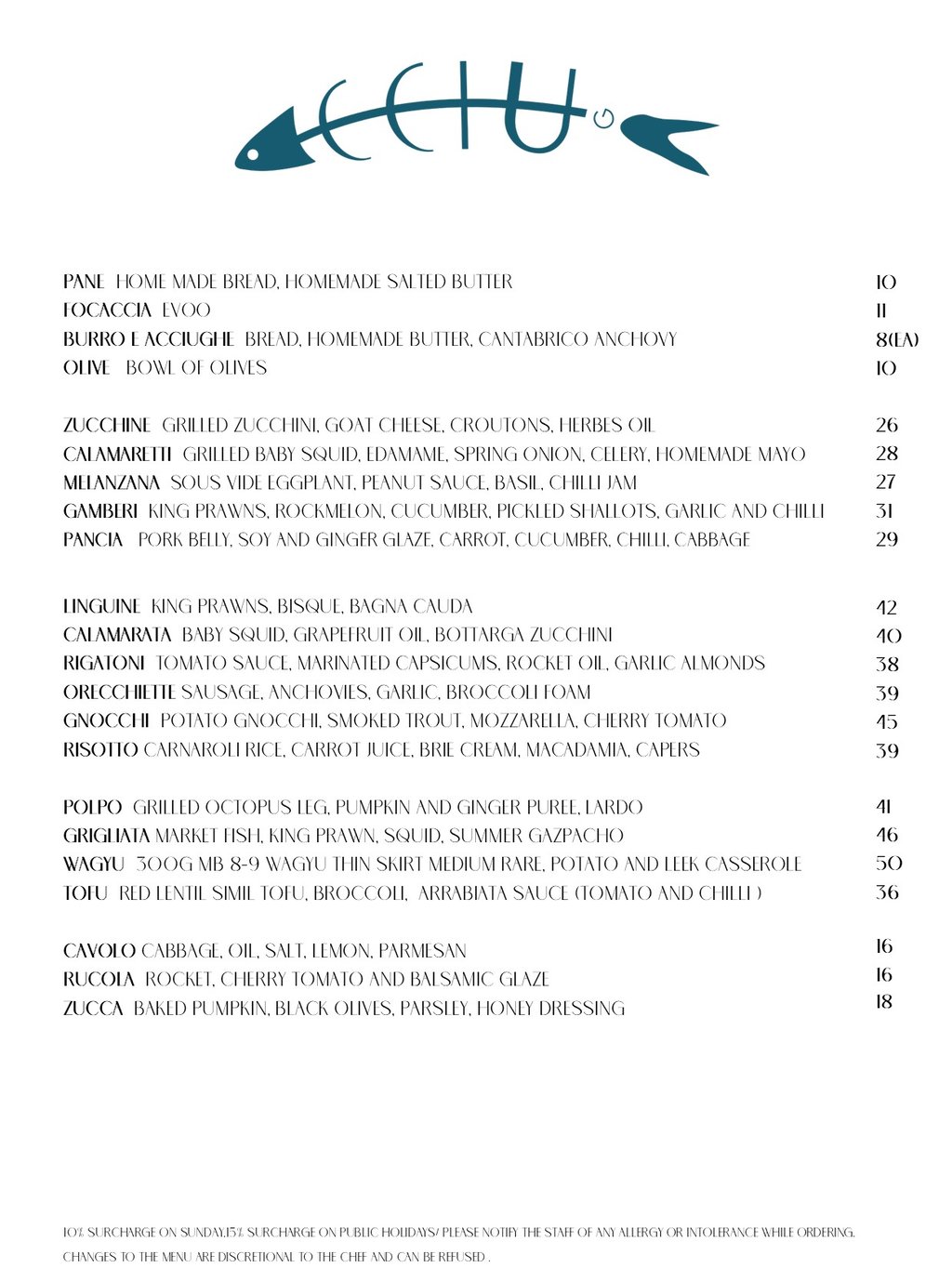 *the menu is subject to changes without notice due to availability of ingredients or resources